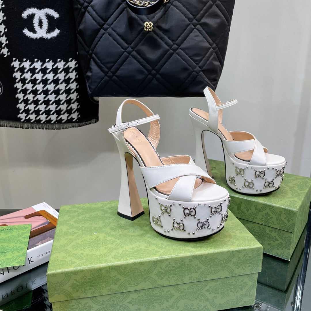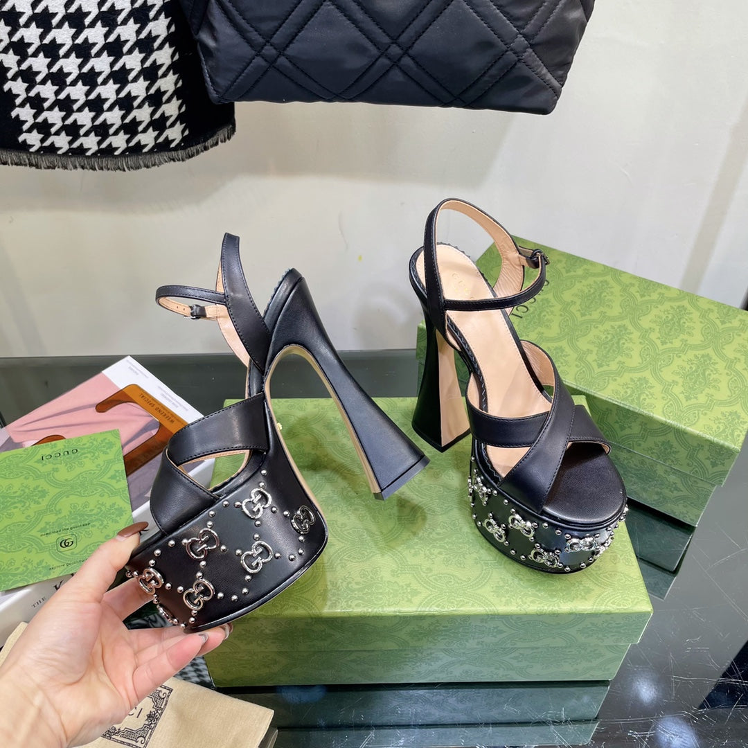 GU Shoes High Heels Wedge Interlocking G studs 3 Color 's